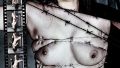 ベットを背に床に座る男の背後からアリサ様が覆いかぶさり両足で体を押さえ付け片手で火のついたタバコを持ってもう片方の手で乳首を触り弄ぶ。