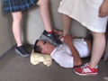 女子達は男を見下ろしながら何度も体を踏みつけ靴舐めさせる。