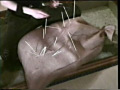 袋に長い串を刺していくと悲鳴を上げながら揺れ動いた。