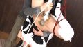 男は舌でブーツの底を靴舐めしながら興奮する。