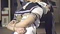 女が立あがって男の股間を狙って容赦なく金蹴りをすると清楚な見た目からは想像できない強烈な蹴りが男の股間に当たって悲鳴を上げて悶え苦しむ。