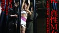 空中で揺れる女子の両乳首を洗濯ばさみで挟む。