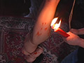 男は火の付いた蝋燭を持って尻や太ももに近づける。